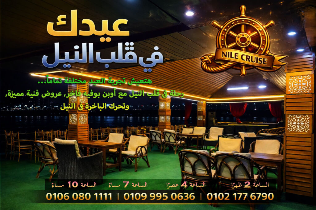 بالإضافة إلى ذلك، تُزين الأمسية عروض موسيقية وفنية استعراضية تضيف لمسة ساحرة. بينما تستمتع بأجواء رومانسية وإطلالة مباشرة على النيل. لذلك، فهي الخيار الأمثل للسهرات الخاصة وأعياد الميلاد. وهكذا، ستظل هذه الرحلة ذكرى جميلة لا تُنسى. في الوقت نفسه، يمكنك الحجز لمناسباتك الخاصة والحصول على خدمات VIP.